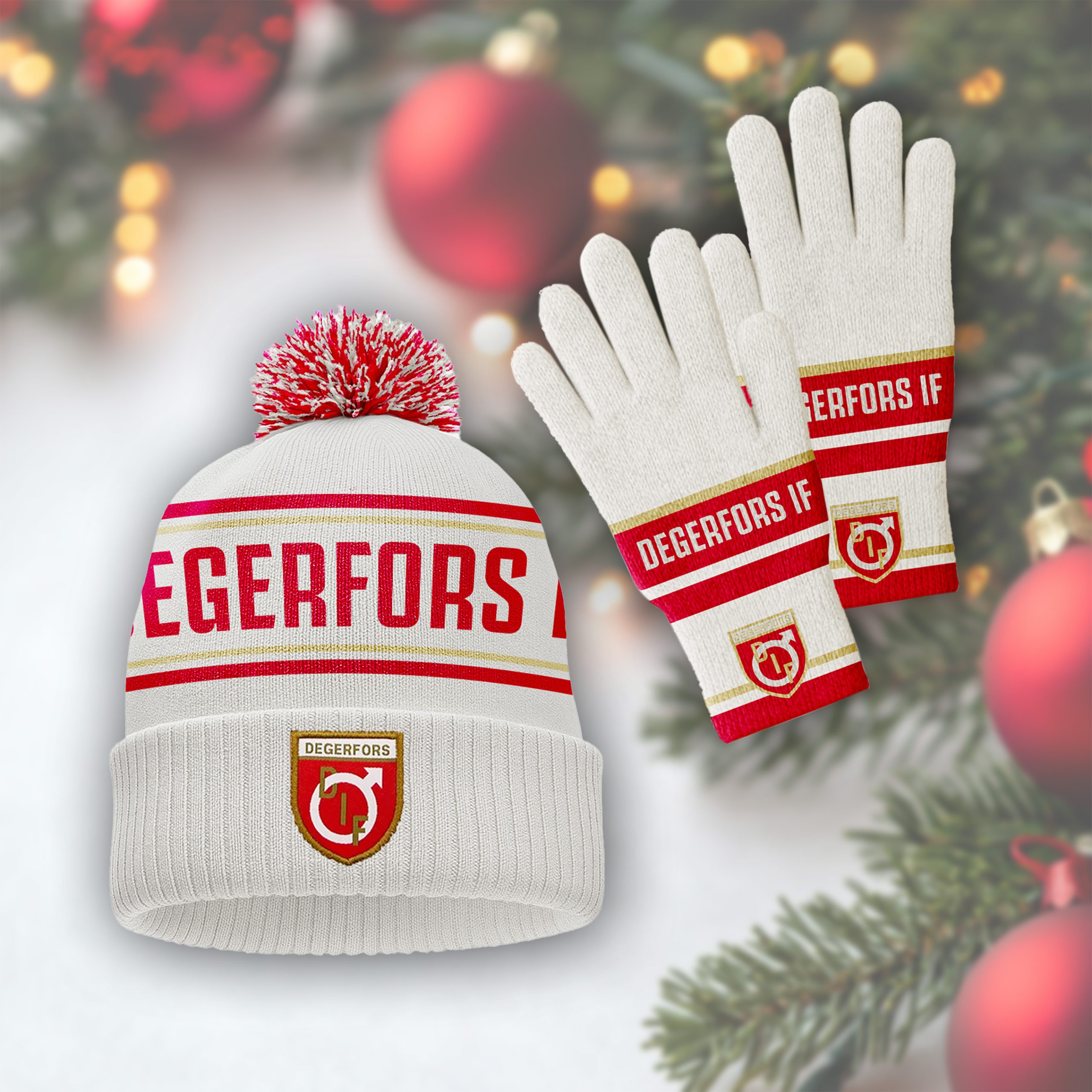 Paket med varm mössa och matchande vantar i Degerfors IF:s färger.